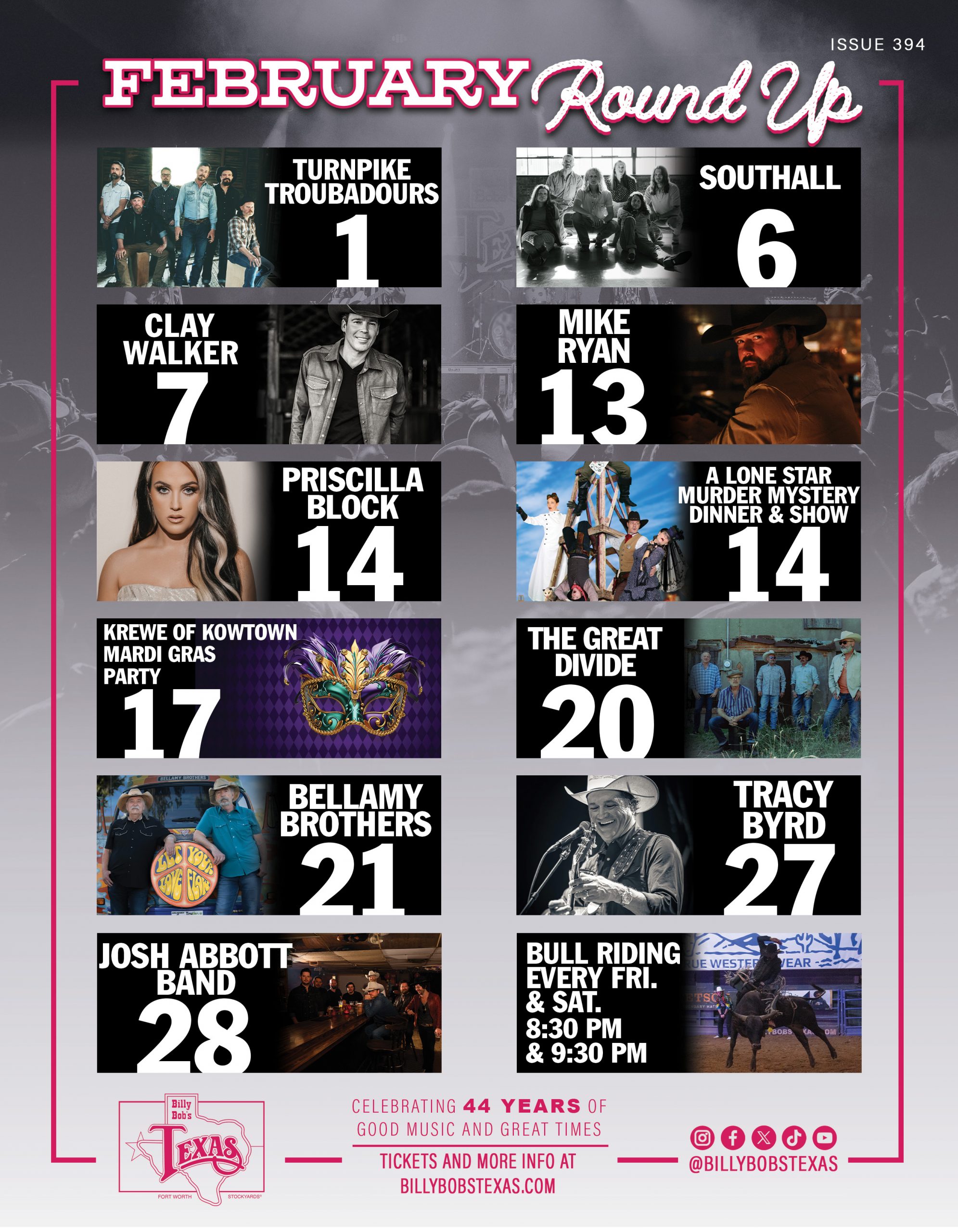 For the full concert calendar, special events, and visitor information, please visit billybobstexas.com.